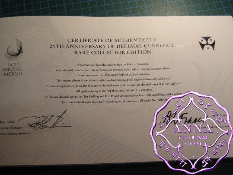 1991 25th Anniversary Banknote Set 868