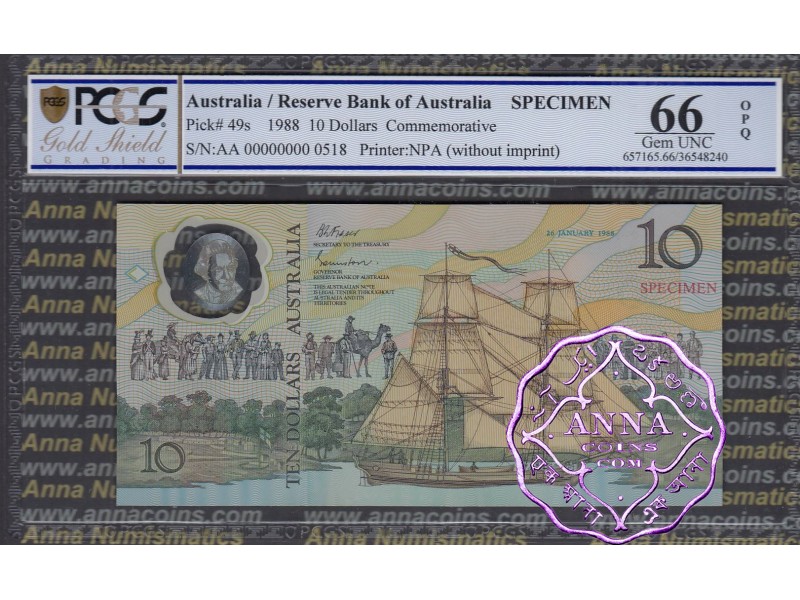 1988 Specimen AA$10 PCGS 66 OPQ