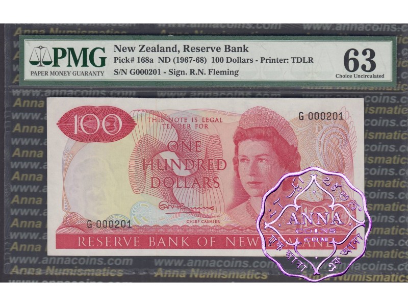 New Zealand 1967 $100 R.N.Fleming PMG 63