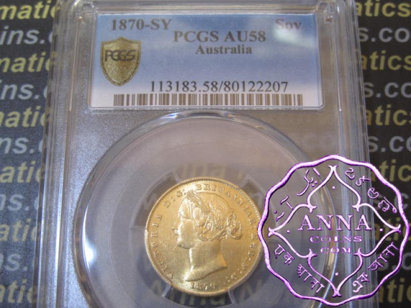 Australia 1870 Sydney Mint Gold Sovereign PCGS AU58