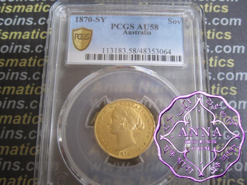 Australia 1870 Sydney Mint Gold Sovereign PCGS AU58