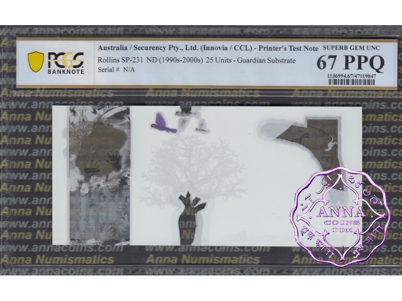 Australia Guardian 25 Polymer Test note Aboriginie Type1 PCGS 67 PPQ With Original Folder