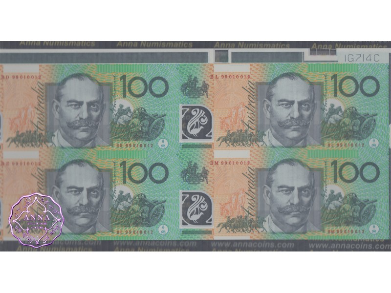 1999 $100 U11 Macfarlane/Evans Uncut of 4 Red PCGS 68 PPQ