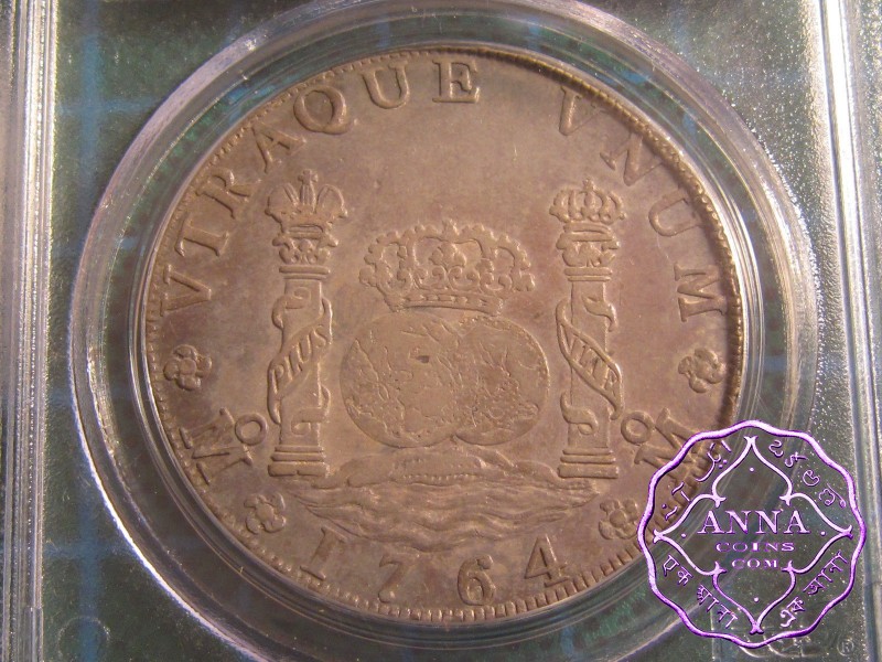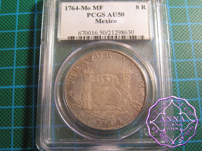 Mexico 1764 Mo-MF Charles III 8 Reales Pillar Dollar PCGS AU50