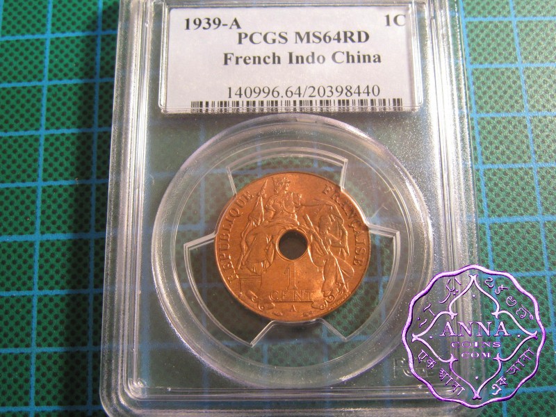 French Indo China 1939 A French Colony Cent PCGS MS64RD