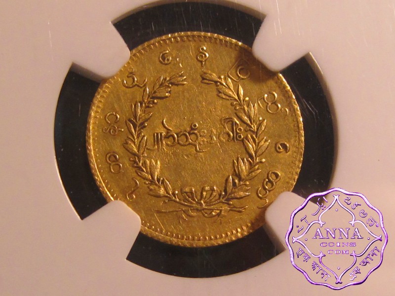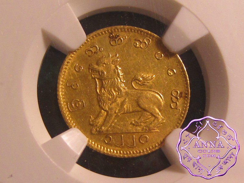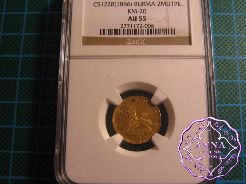 Burma 1866 Mindon gold 2 Mu 1 Pe NGC AU55