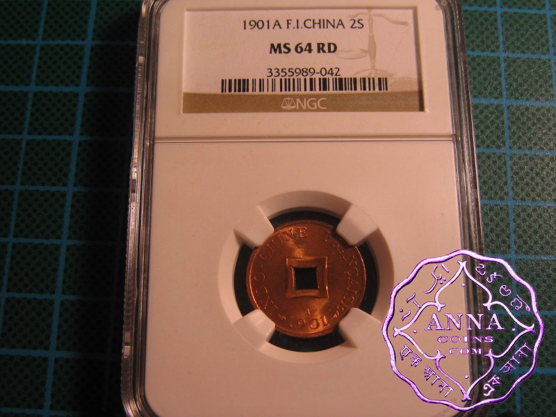 French Indo China 1901 A French Colony 2 Sapeque NGC MS64RD