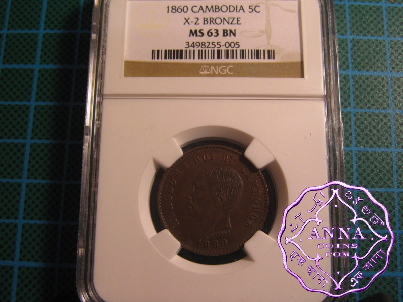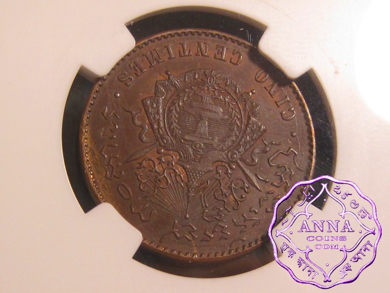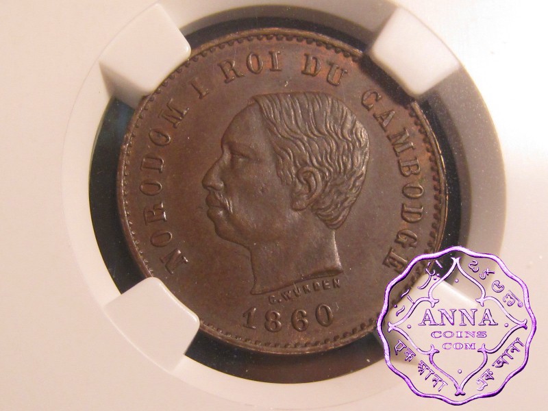 Cambodia 1860 Norodom I 5 Centimes NGC MS63BN
