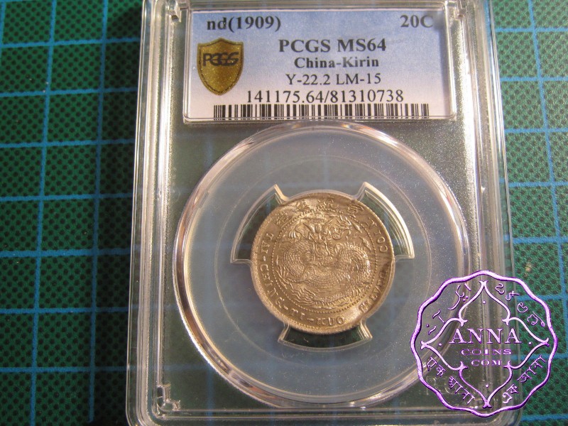 China 1909 Kirin 20 Cents 造币分厂 “吉” PCGS MS64