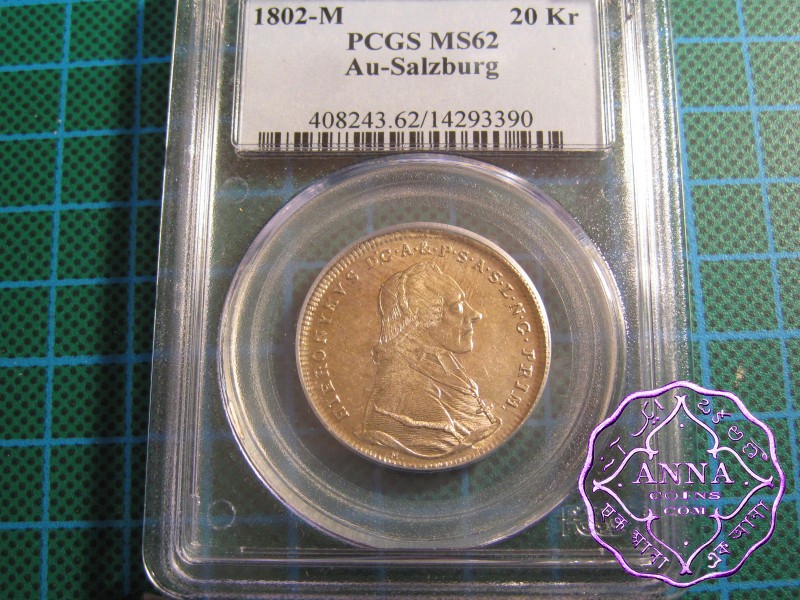 Austria 1802 M Salzburg Hieronymus 20 Kreuzer PCGS MS62