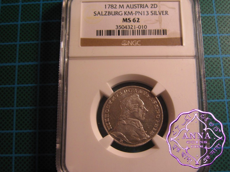 Austria 1782 M Salzburg Hieronymus Silver Pattern Of The Gold Double Ducat NGC MS62