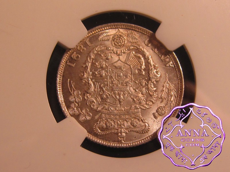 Crowned Garnished Shield reverse, a gorgeous example of this very scarce 1-year type, bold strike showing all the tiny design details, surfaces just about immaculate and fully original, light silvery gray with brilliant luster showing through and delicate hues of iridescence, one of only a few given this lofty numerical or technical grade by either grading service, and here the eye appeal is also excellent. It is difficult to put a really close, accurate estimate on many English milled coins in really high grades, because so few exist.