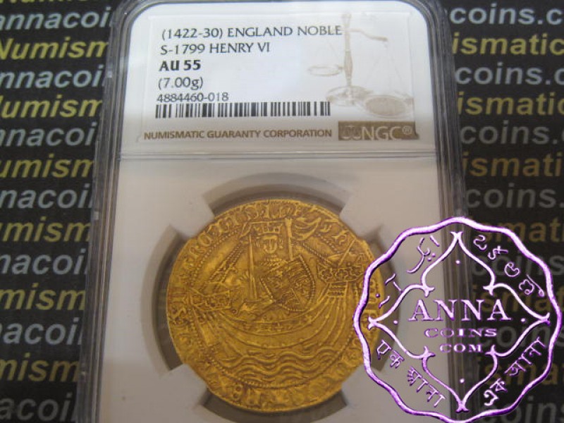 Great Britain 1422-30 1st Reign Henry VI Gold Noble NGC AU55
