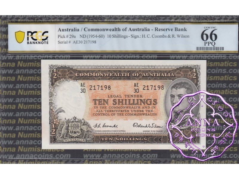 1954 R16 Ten Shillings Coombs/Wilson PCGS 66 PPQ