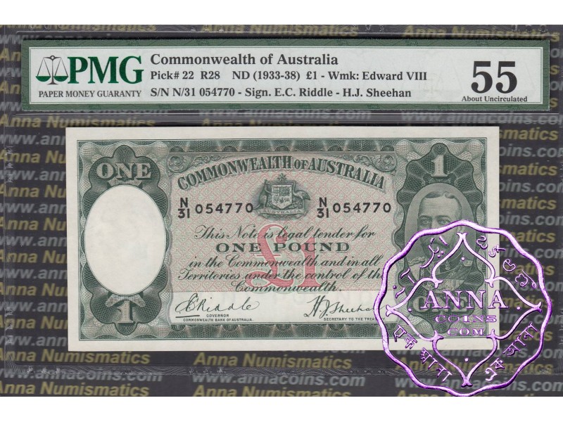 1933 R28 One Pound Riddle/Sheehan PMG55