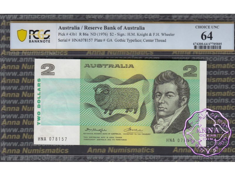 1976 $2 R86a Knight/Wheeler PCGS 64