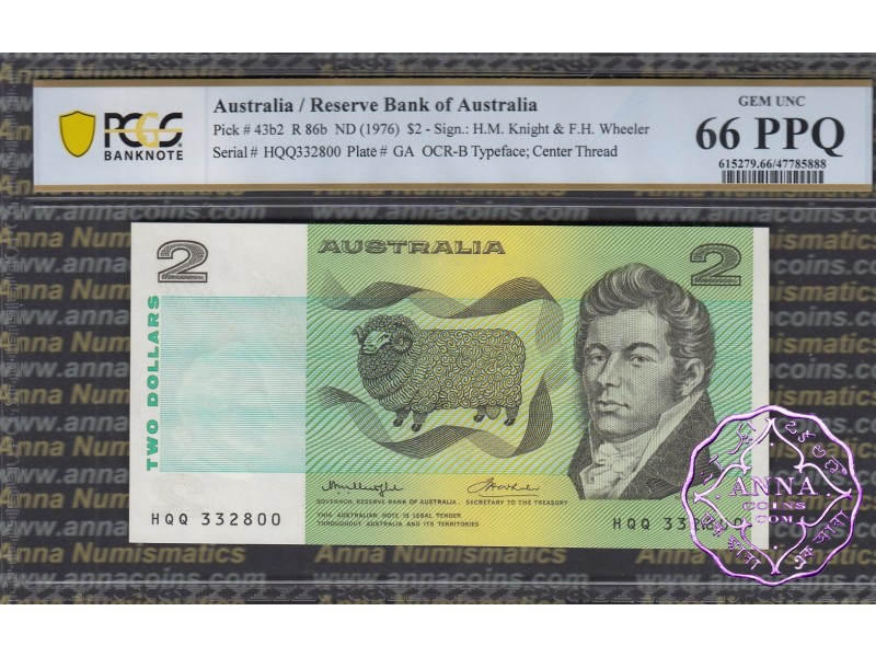 1976 $2 R86b Knight/Wheeler PCGS 66 OPQ