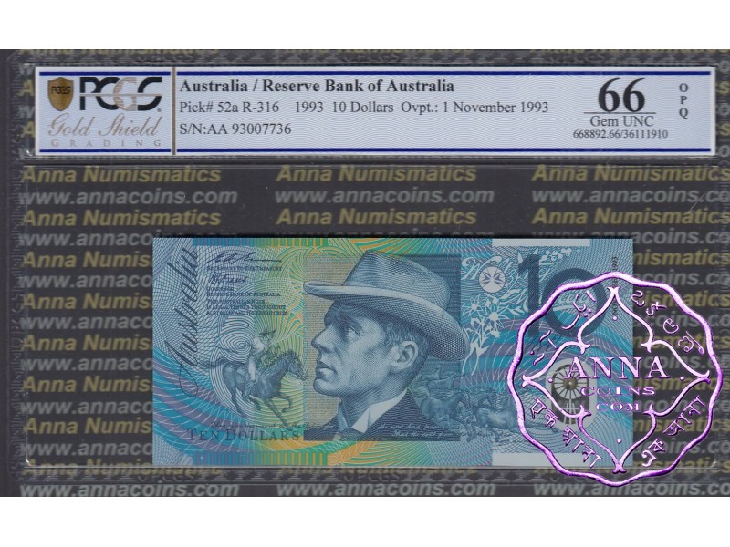 1993 $10 AA93 Opt Fraser/Evans PCGS 66 OPQ