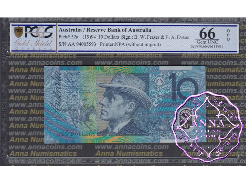 1994 $10 AA94 Fraser/Evans PCGS 66 OPQ