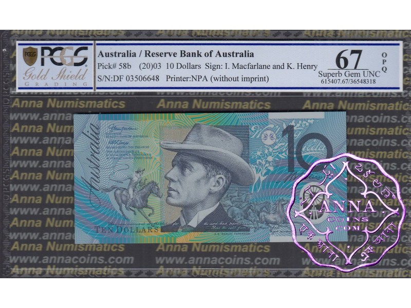 2003 $10 R320bL DF03 Macfarlane/Henry PCGS 67 OPQ