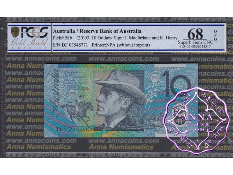 2003 $10 R320bL DF03 Macfarlane/Henry PCGS 68 OPQ