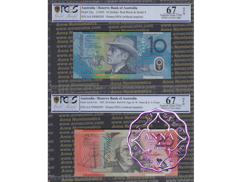 1995 $10 & $20 Red AA95000295 Matching Pair PCGS