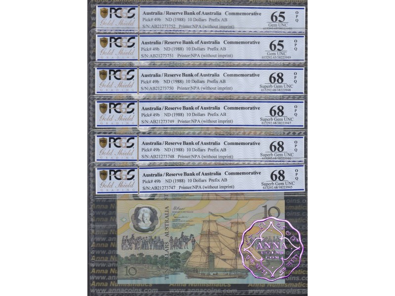 1988 R310b $10 2nd issue Johnston/Fraser Run of 6 PCGS 65/68 OPQ
