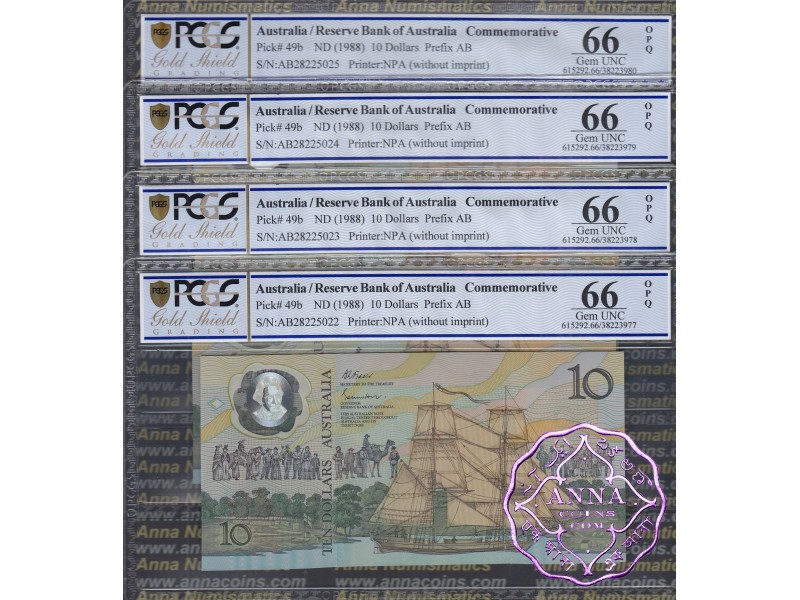 1988 R310b $10 2nd issue Johnston/Fraser Run of 8 PCGS 66 OPQ