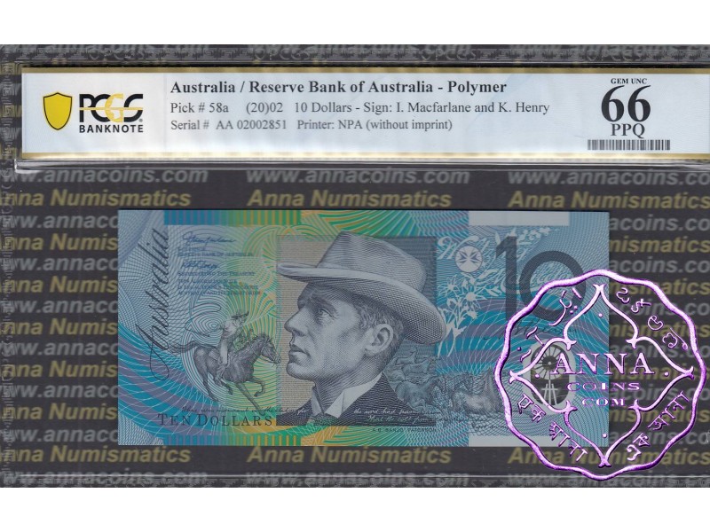 2002 $10 R320aF AA02 Macfarlane/Henry UNC PCGS 66 OPQ