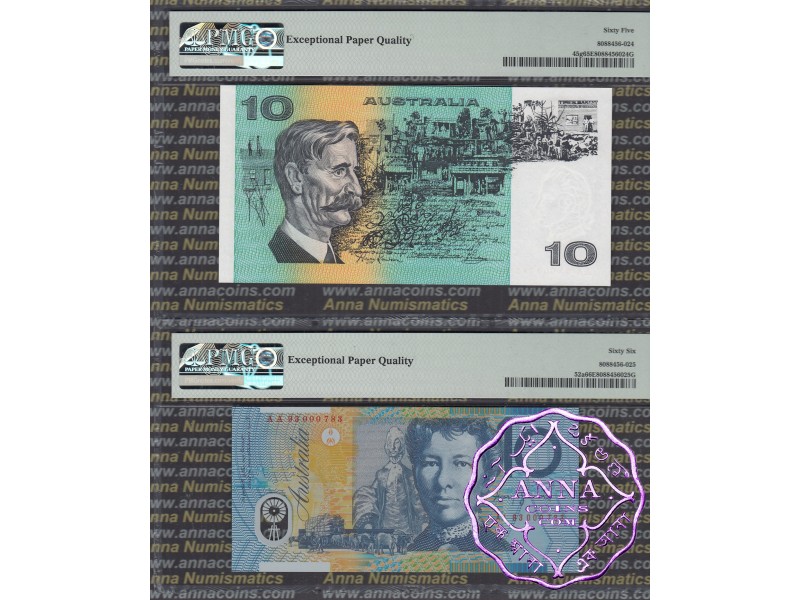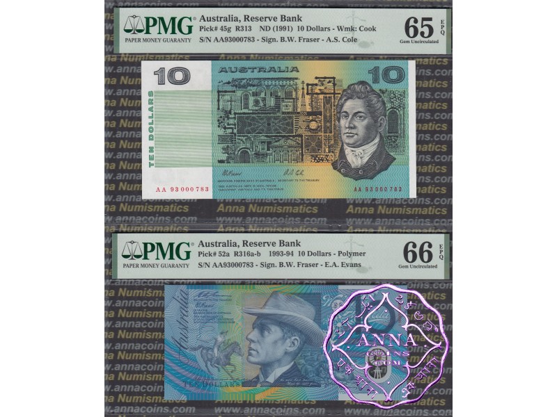 1991 & 1999 $10 Red AA93000783 Matching Pair PMG