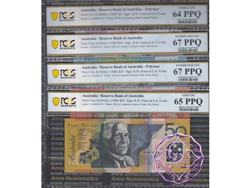 1996 $5-$50 Black AA96004712 Matching Set PCGS