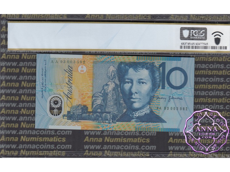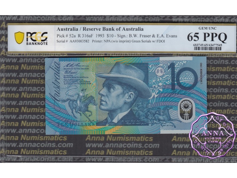 1993 $10 AA93 Opt Fraser/Evans PCGS 65 PPQ