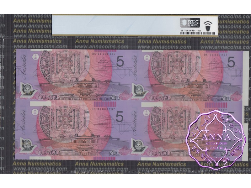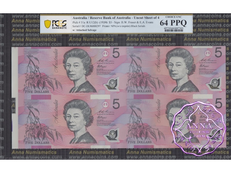 1996 $5 U15 Fraser/Evans Uncut of 4 PCGS 64 OPQ
